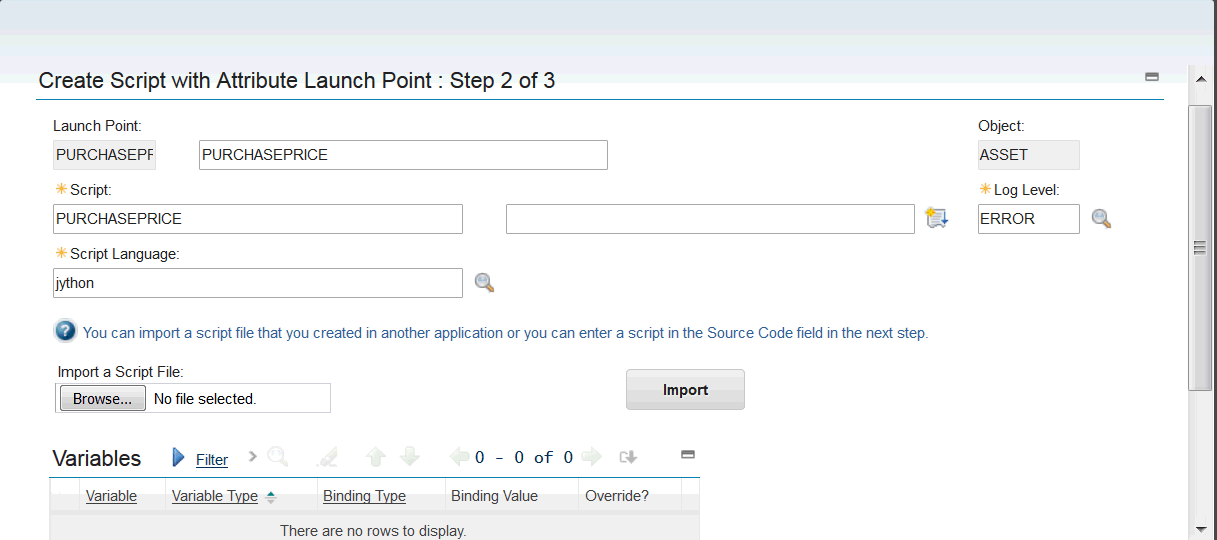 3. Entrez un nom pour le script et changez le langage de script en 'jython'.