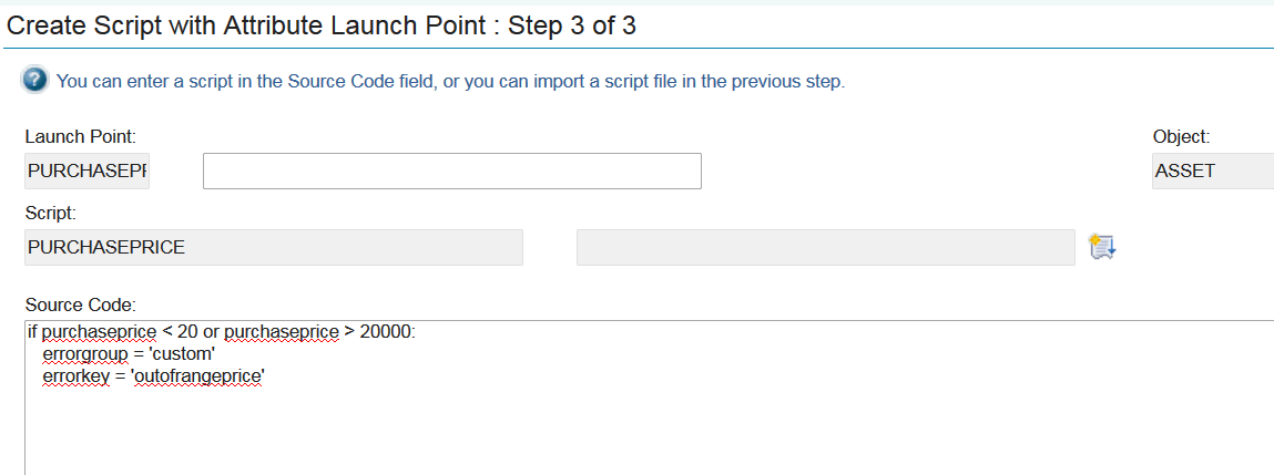 2. Renseignez les champs Point de lancement, Objet et Attribut.