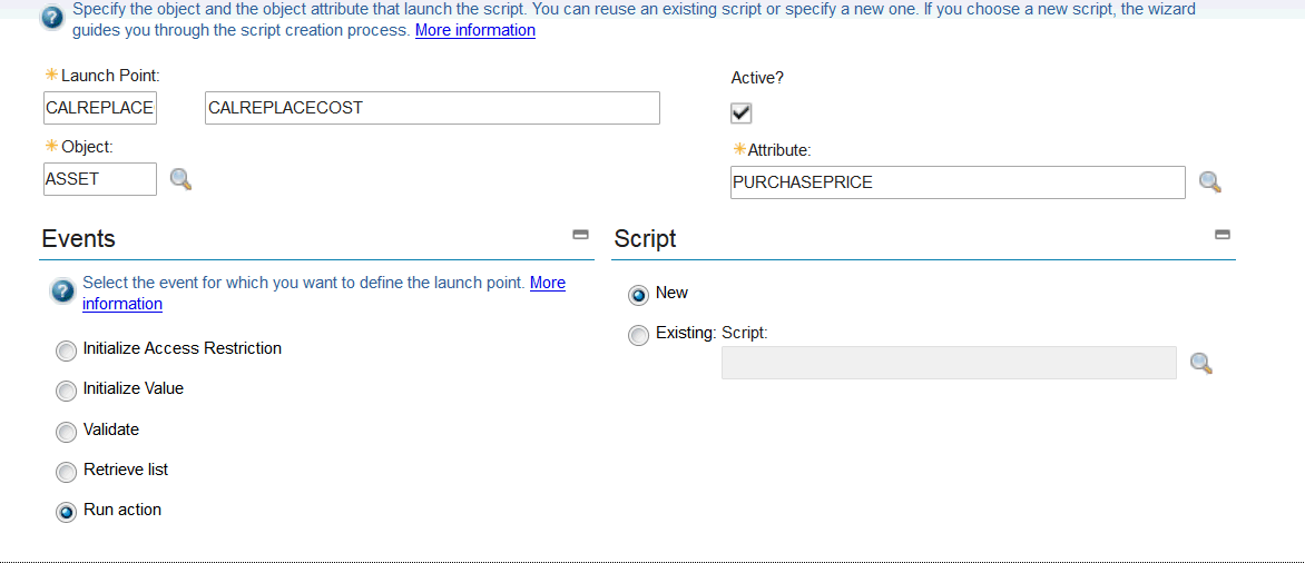 Dans le menu « Plus d'actions », cliquez sur « Créer » et sélectionnez le « Script avec l' attribut Launch point » l' action .