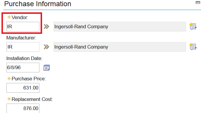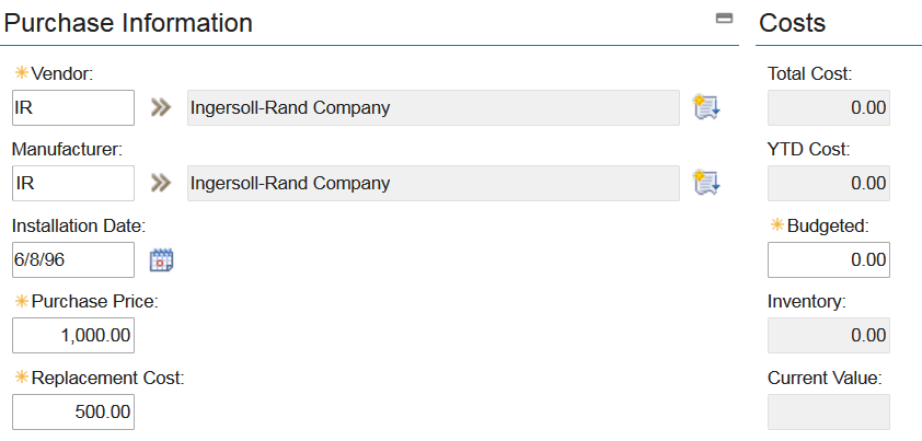Par exemple, le champ "Fournisseur" comporte un astérisque pour indiquer qu'il s'agit d'un champ obligatoire. 4. Entrez 1000 dans le champ Prix d'achat et tabulez hors du champ.